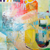 Each of these works is done in acrylic on stretched canvas, and are 1.5" thick (museum mount) with the painting continuing on all edges. Paint and color are built up over months of intermittent application, producting a rich textural finish. Some also contain other media, like paper or plastic.